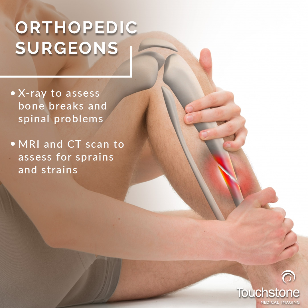 You probably guessed this one right away. Orthopedic doctors specialize in the diagnosis and treatment of the musculoskeletal system including bone, joint, tissue, and nerves. Orthopedic surgeons would find it challenging to make accurate diagnoses and prescribe the right treatment without seeing what is going on. Orthopedic doctors use x-rays to see breaks clearly, and it is these x-rays that lead to a treatment plan that may or may not require resetting of the bones, casting, or surgical intervention. MRI and CT scans allow orthopedists to evaluate sprains and strains and differentiate the sources of pain in a patient without an obvious bone break. Orthopedic doctors may use initial medical imaging to diagnose and then repeat imaging to ensure full healing of the injury or assess the effectiveness of their interventions.