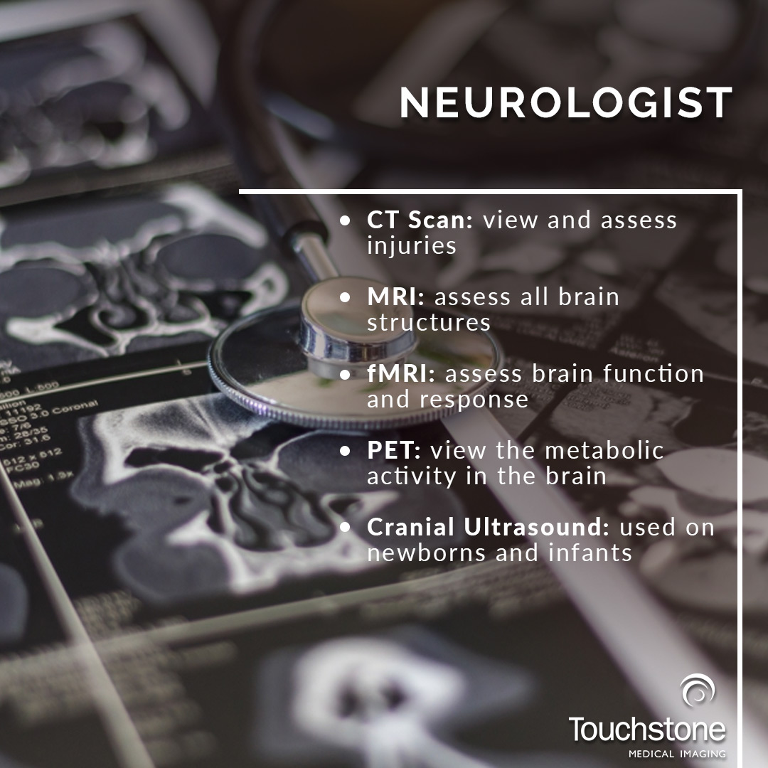 Neurology is the branch of medicine that deals with the nervous system, including the brain, spinal columns, and nerves. Neurologists use a variety of specialized imaging techniques referred to as neuroimaging. Structural imaging of the brain and spinal cord use standard imaging modalities including CT, MRI, PET scan, and cranial ultrasound. Additionally, neuroimaging uses specialized imaging software to assess the functionality of the neurological system. Functional MRI (fMRI) is used to visualize the effects of the stimulus on the brain’s activity. PET scans are used to measure metabolic activity in the brain, primary oxygen delivery and glucose usage. Cranial ultrasounds are useful to assess the brain of newborns whose fontanelles have nor yet closed.