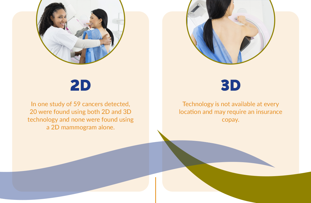 This is because the superficial X-rays of a 2D mammogram cannot detect the presence of dense tissue, which appears to be white on traditional imaging devices. This is problematic because cancerous areas of breast tissue also appear white on a traditional mammogram. Thus, women with a greater amount of dense breast tissue are better off with a 3D mammogram or some combination of traditional and multi-layered techniques.